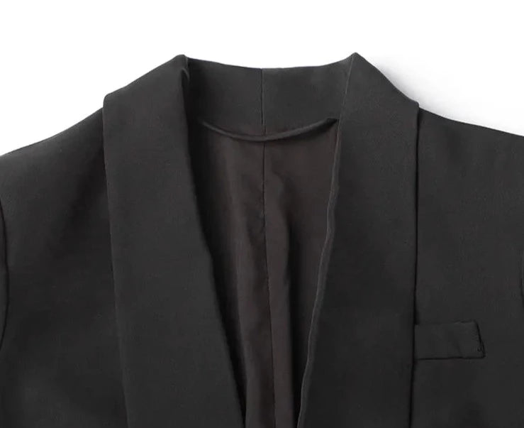 Black Crop Suit with Rhinestone Butterflies