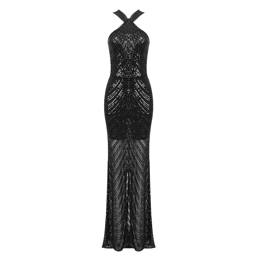 Our dramatic Black Sequin Maxi Dress with Front Slit is made from sequin lace. It features a halter neckline in a floor length design. This is the perfect dress for a formal event to make you stand out!
