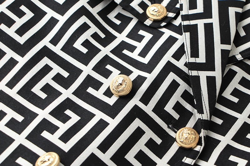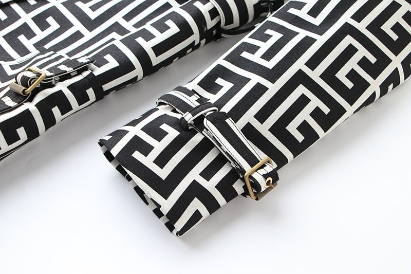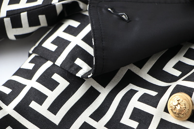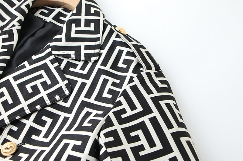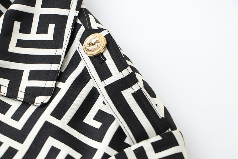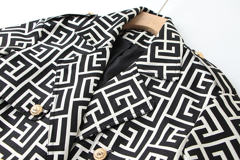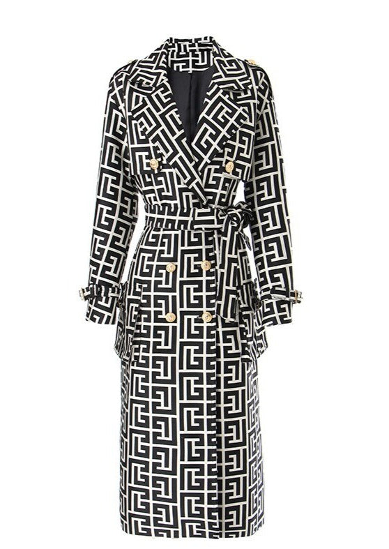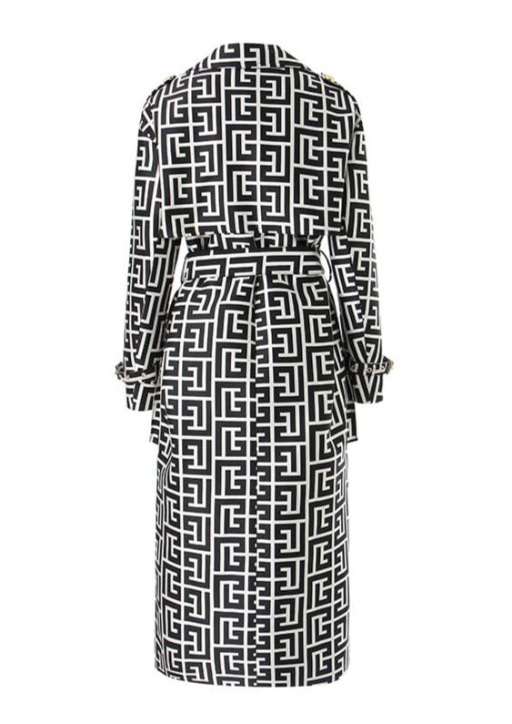Black-White Pattern Trench Coat
