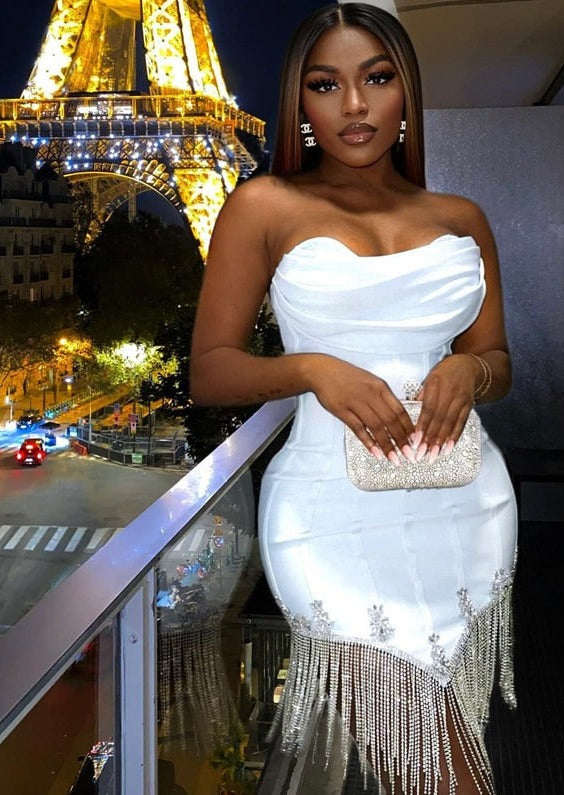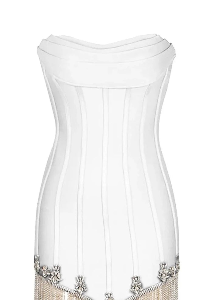Get ready to wow in our Corset Mini White Dress with Rhinestone Threads! This gorgeous show-stopping mini dress features sweetheart neckline with exposed shoulders and showcases stand-out embellishments. This is the perfect birthday or night out dress to make you stand out!