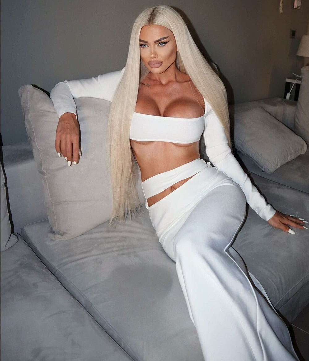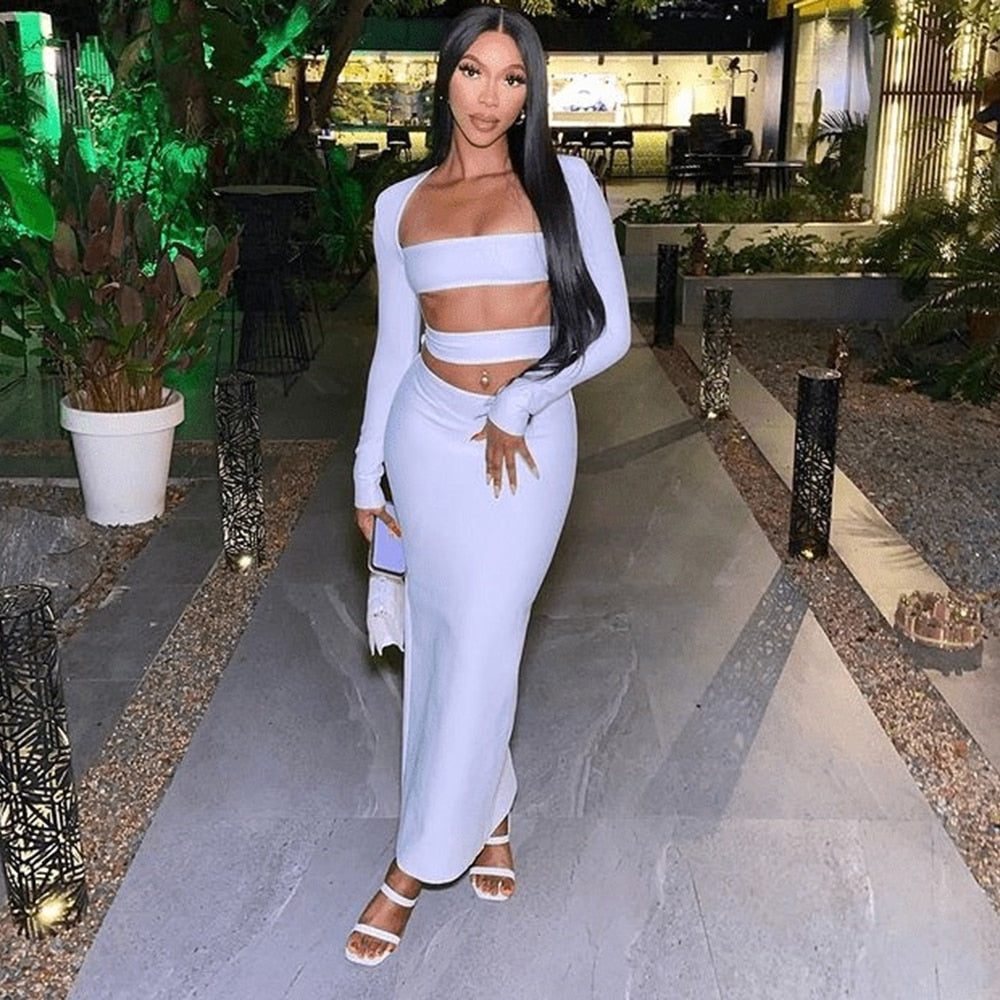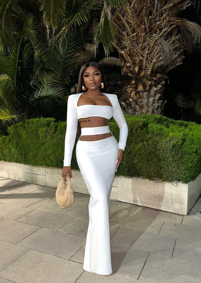 Cut-Out White Two-Piece Set with Tight Maxi Skirt
