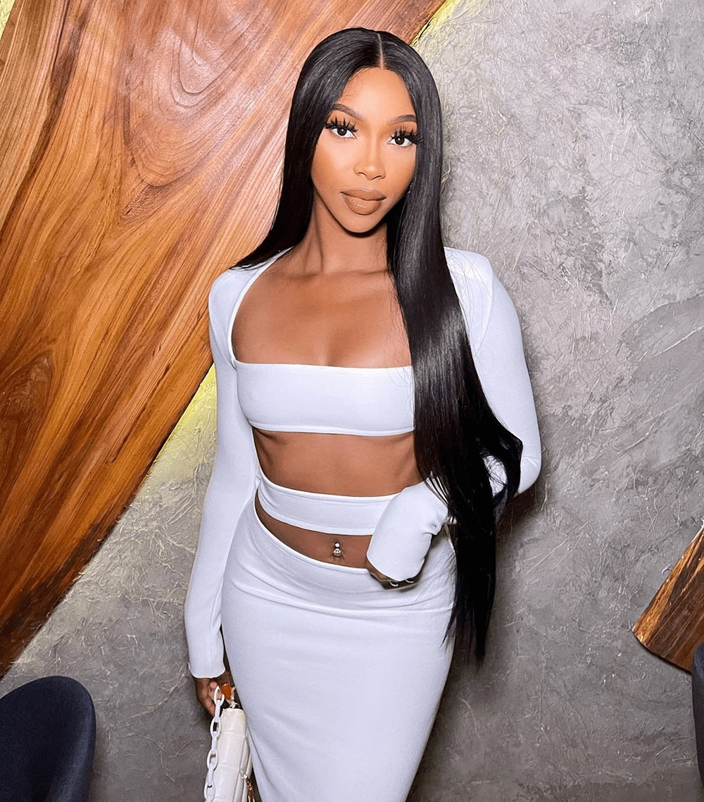Cut it out. Turn heads in our Cut-Out White Two-Piece Set with Tight Maxi Skirt. Featuring striking chest and midsection openings. Style with heels, smoky eye and a bold lip.