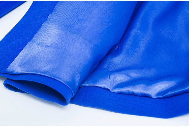 Our Double-breasted Blue Blazer is a must have in your wardrobe. Featuring a double breasted fit with lion golden buttons for extra detail. On the lining. Style with your favorite pants for a chic look! The perfect outfit for the office.