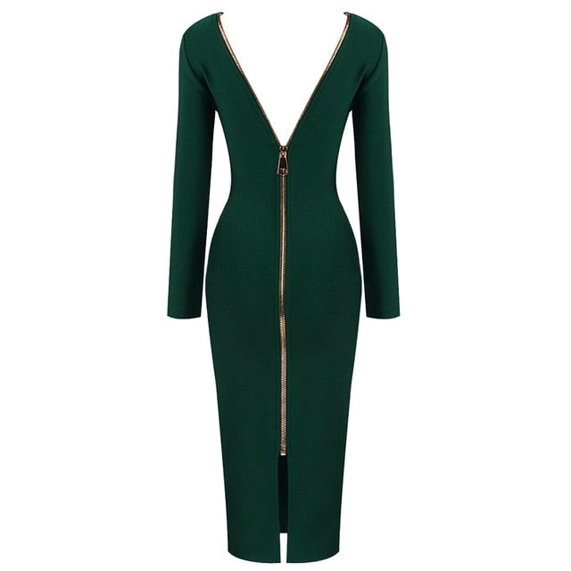 Add some colour to your wardrobe with our Open Back Green Midi Dress! Featuring an open back with zipper in a body-hugging design. Style with heels and a mini bag for a look we're loving!
