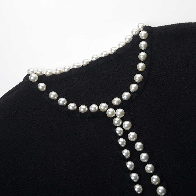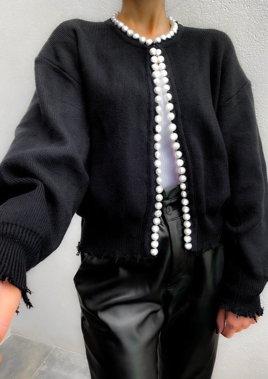 Absolutely chic style! Our Pearl Neckline Open Cardigan is timeless and decorated with the most desirable details of the season.