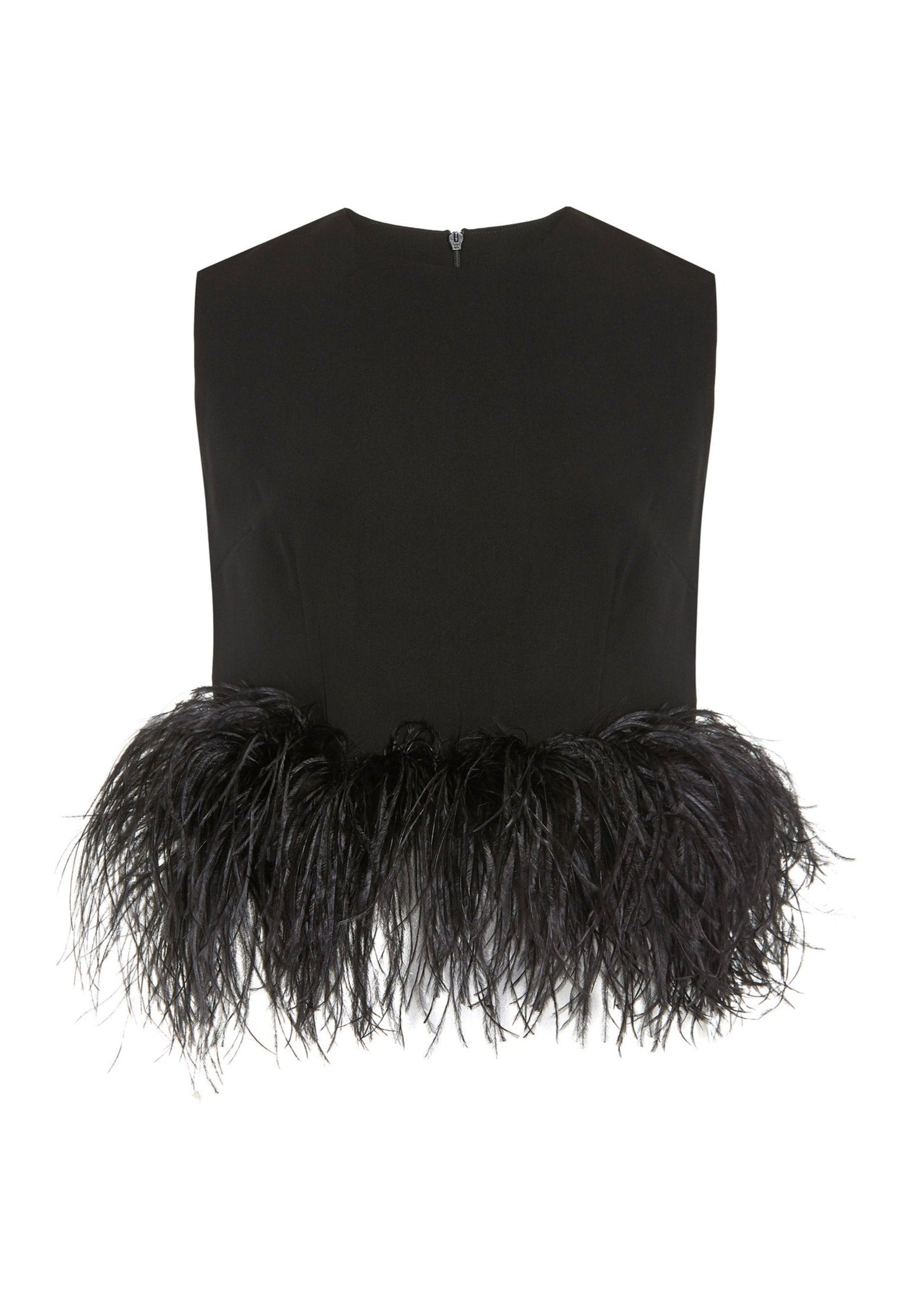 Top With Feathers in thick suiting fabric. Concealed zipper at the back. On the lining.