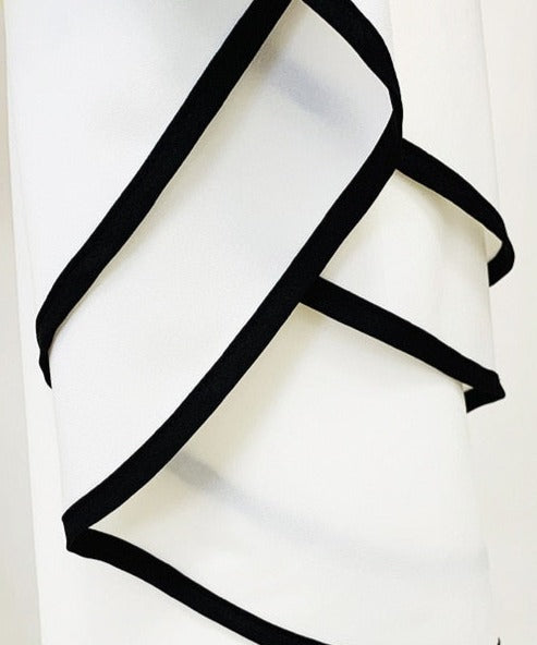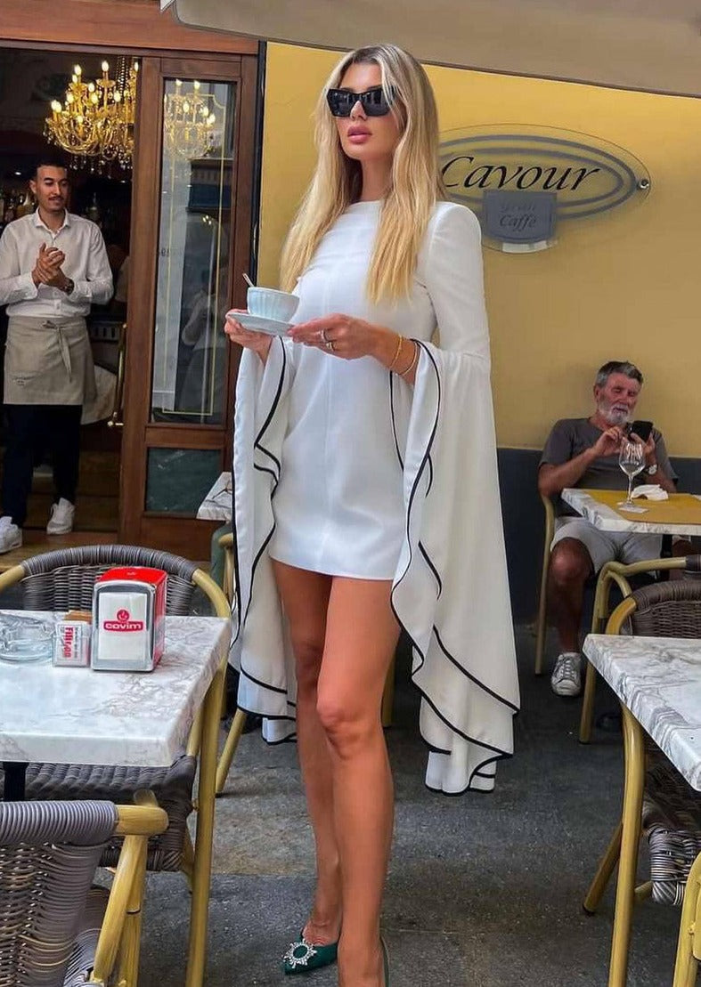 Introducing the White Mini Dress with Long Ruffle Sleeves: a tastefully crafted, ivory white dress adorned with oversized sleeves. Create a show-stopping look with this dress and you'll be sure to turn heads. With this timeless piece, you'll add sophistication and drama to any outfit.